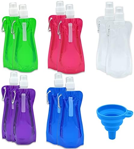 10pcs Collapsible Reusable Water Bottle with Carabiner Clip and folding funnel, for For Gym, Sports, Teams, Hiking, Camping, Biking, Outdoors, Beach, Traveling, Yoga & More, 5 Color